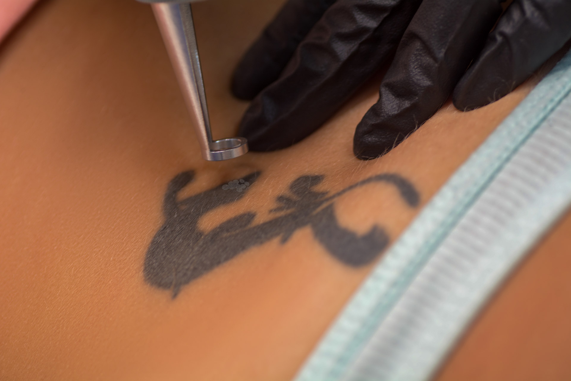 The ND Yag Laser is the gold standard for safe and effective tattoo removal. It works by emitting powerful, quick pulses of energy that are absorbed by the tattoo ink particles. This energy shatters the ink into tiny fragments, which are then naturally cleared away by your body's lymphatic system. We use two different wavelengths to target a broad spectrum of colors: